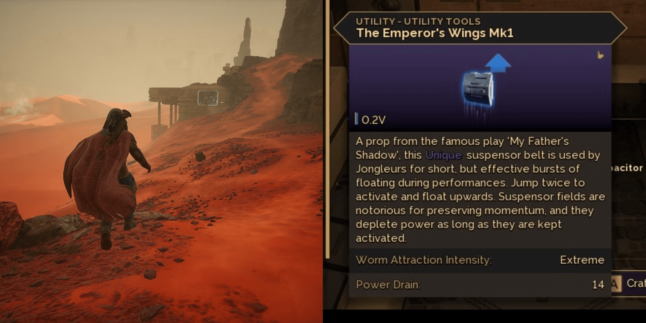 First off, if you're not familiar, the Emperor Wings are a special type of Suspensor Belt. In simple terms, they let you jump higher, fall safer, and move more fluidly across Arrakis. But what sets the Emperor Wings apart from regular belts is their unique perks, including reduced energy drain and momentum preservation—critical when you're navigating tough terrain or escaping enemy aggro.