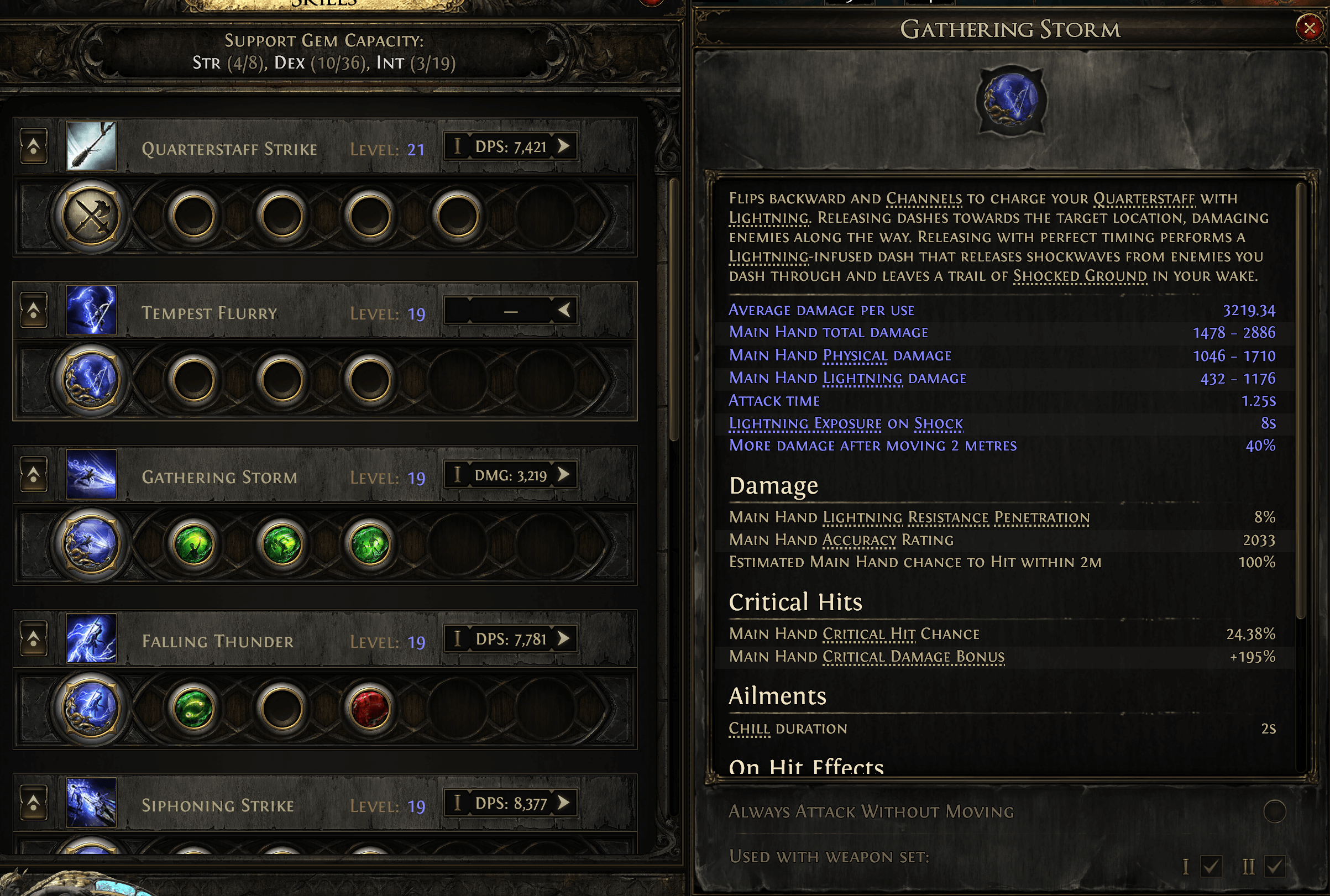 Veteran Tip: Always check a support gem’s keyword tags (e.g., “Lightning,” “Area,” “Duration”). A Gathering Storm gem tagged for “Projectile” skills won’t work with your ground slam.