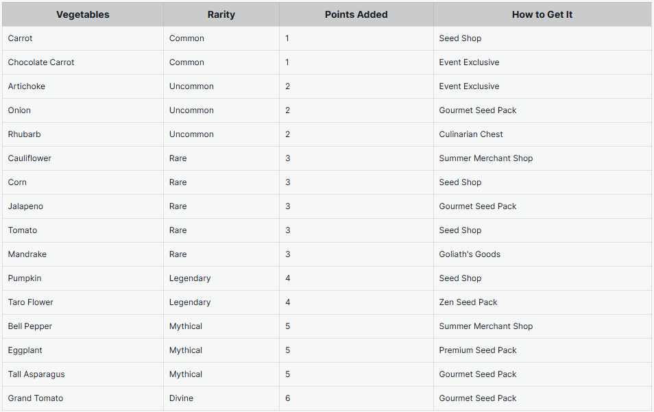 All Vegetables Type Plants in Grow A Garden and How to Get Them