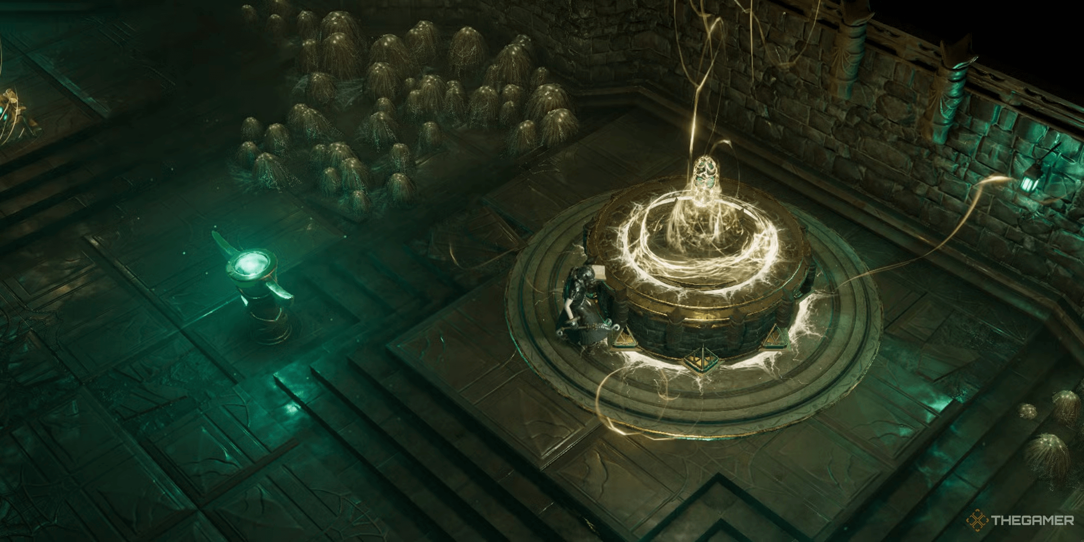 This glowing pedestal is easy to spot and can have one or more uses depending on the tomb. The number of uses is displayed just under the enchantment slot.