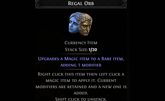 If your magic item already has two strong modifiers, using a Regal Orb can turn it into something valuable.